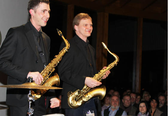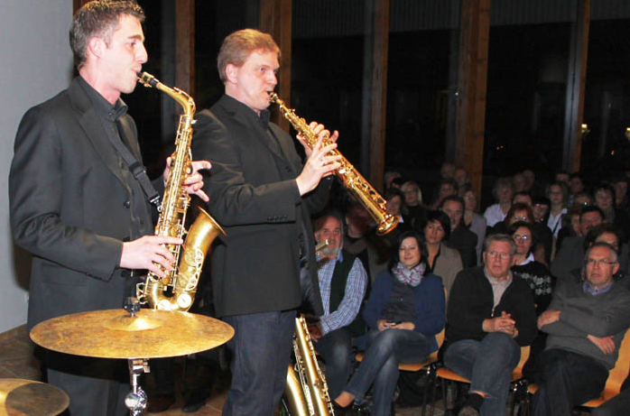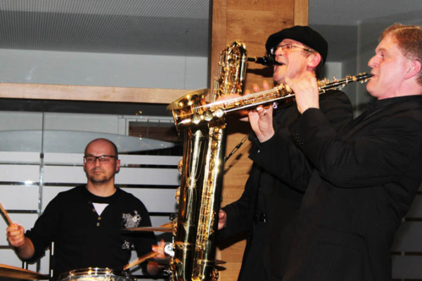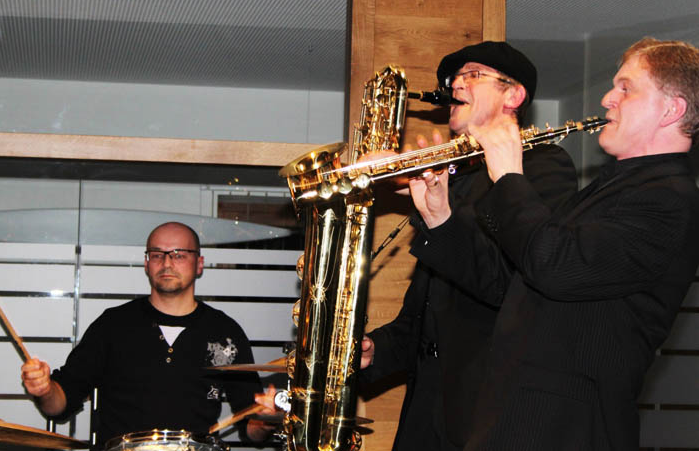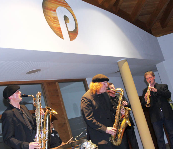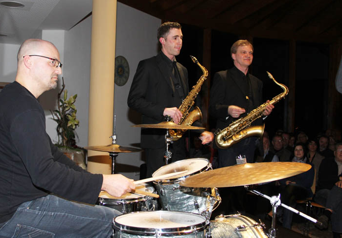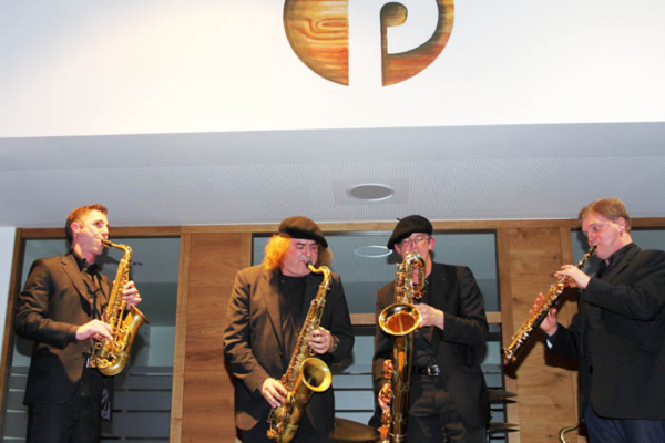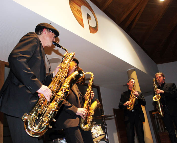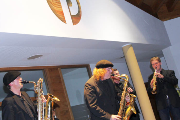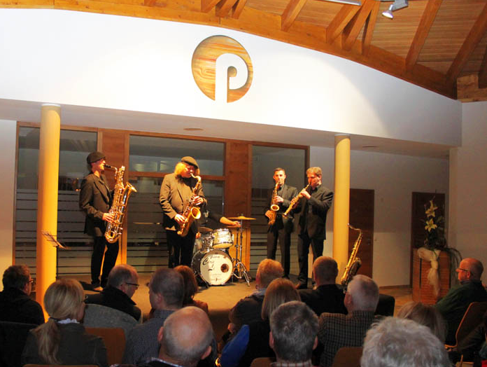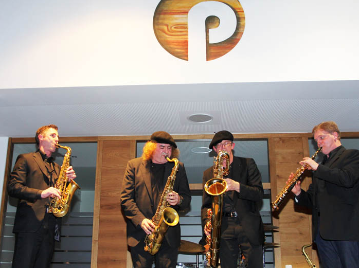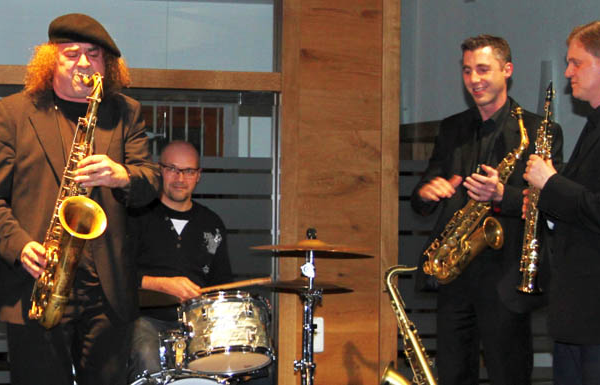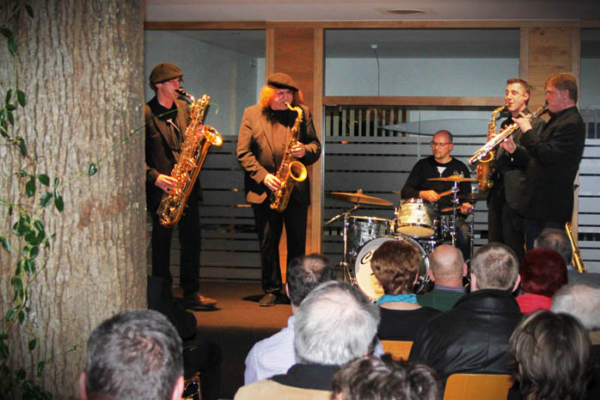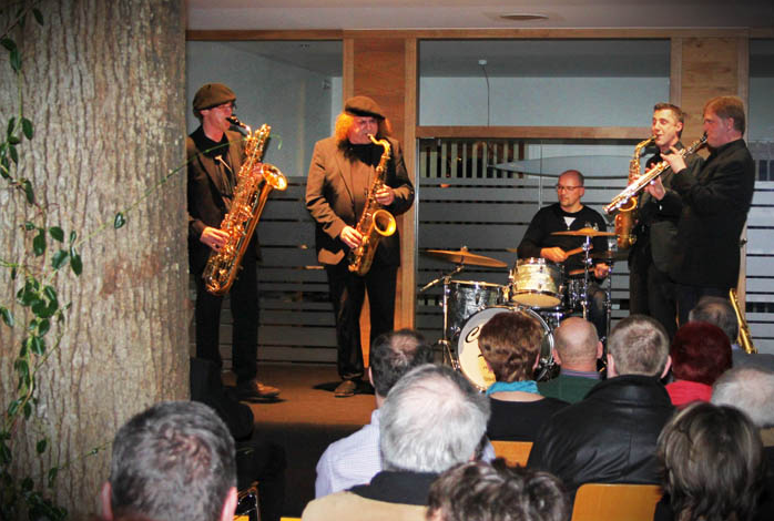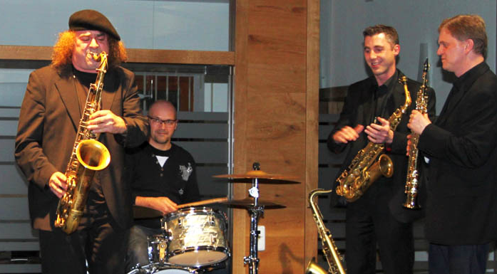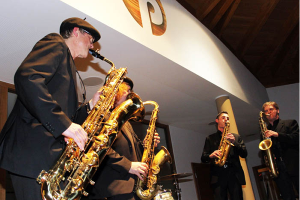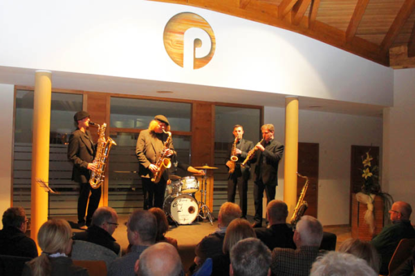Die Gruppe „Sax frontal“ mit Josef Kili, Norbert Asen, Kurt Schreiber und Reinhold Aigner sowie Christian Linecker (Schlagzeug) begeisterte am 29. Februar die Besucher mit toller Jazz-Musik. (copyright: Werbeagentur Innblick)